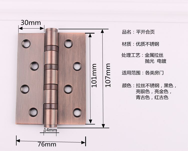 Door stainless steel hinge 4 inch bronze bearing hinge red bedroom door hinge black flat - open page 3mm