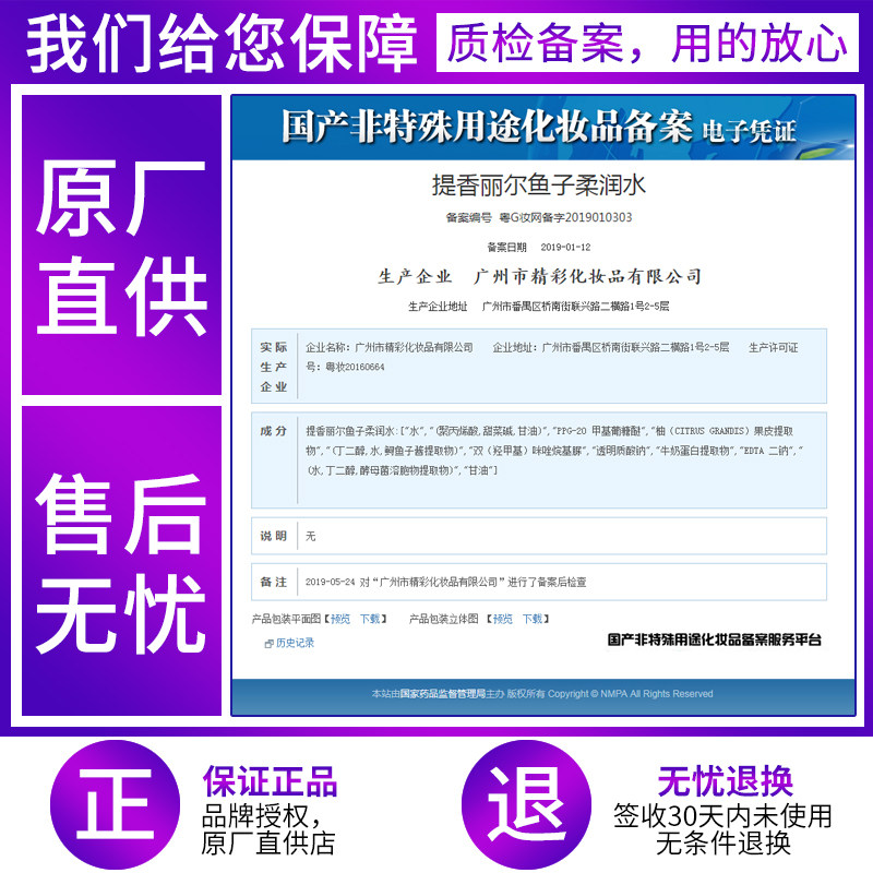 Cosmetics filing number Registration certificate number:
