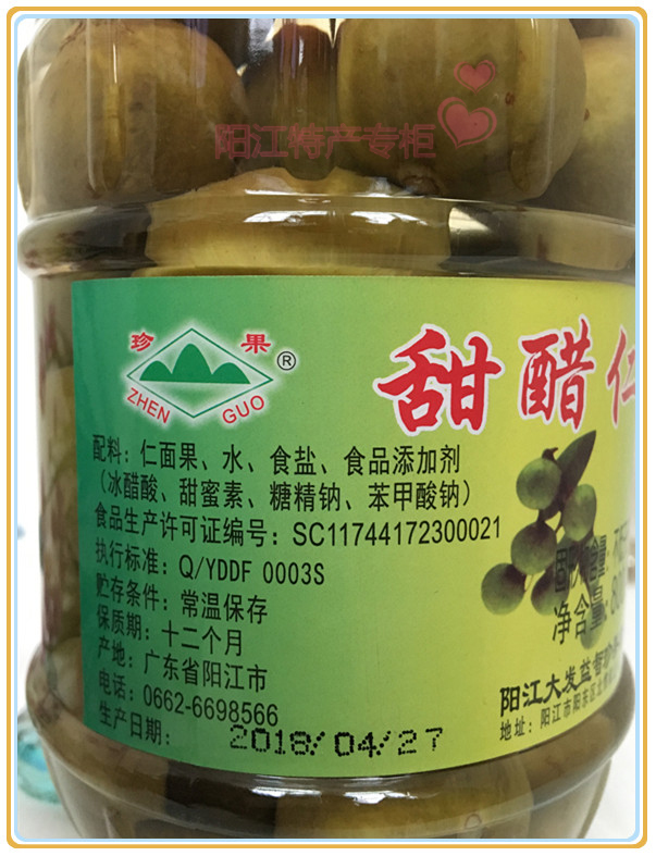 2 parts from Yangjiang Special production with large hair treasures sweet vinegar Renfacial fruit 800g and 280g with vinegar liquid