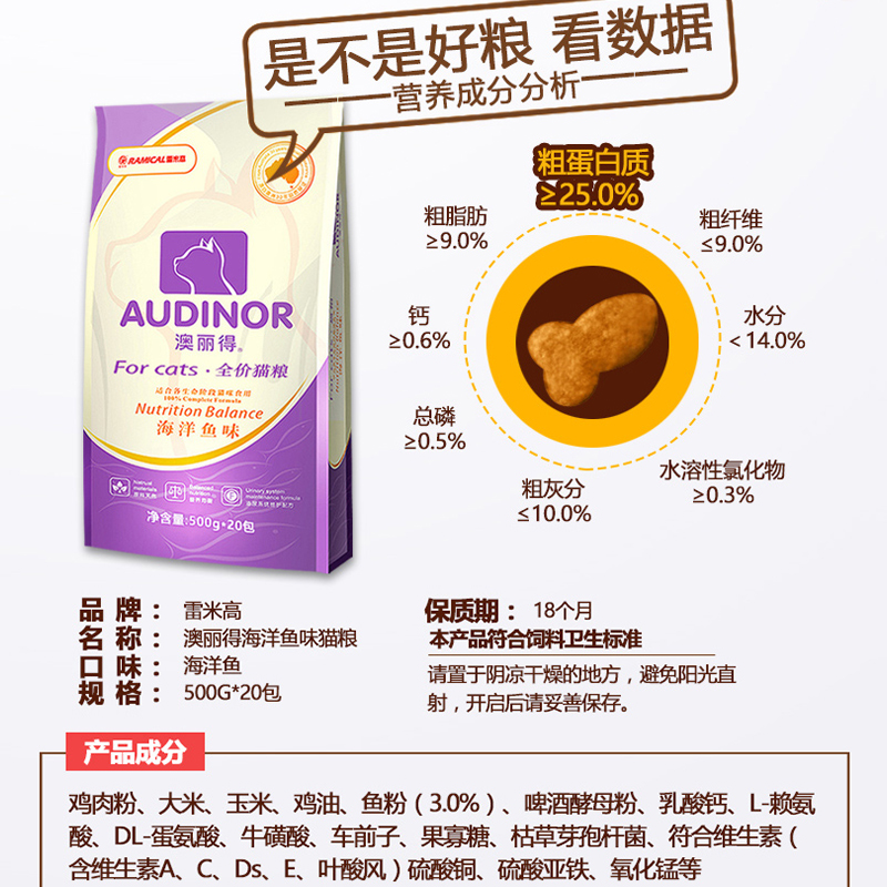 Remigao Aolide cat food 10kg 500g marine fish taste into young cats General low salt natural cat food 20 kg