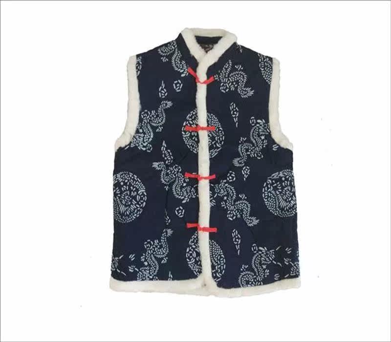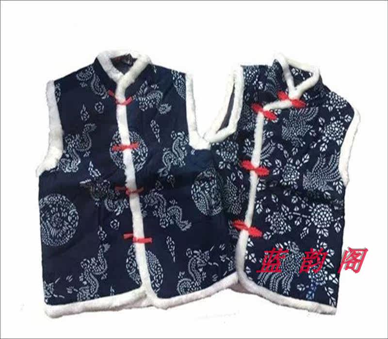 Uzhen Blue Printed Cloth Boy Clothes Pure Cotton Boy Autumn Winter Style Cotton Vest Chinese Style Tang Dress Cotton Waistcoat Warm