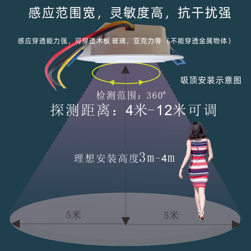 The radar microwave induction switch embedded ceiling 220V sensor for the parking lobby warehouse