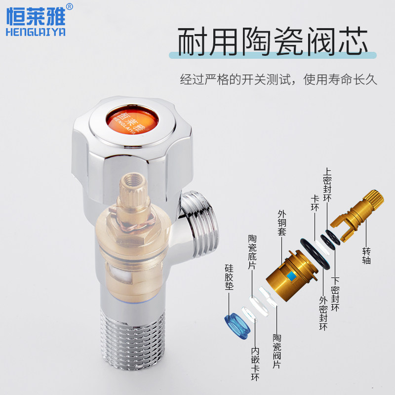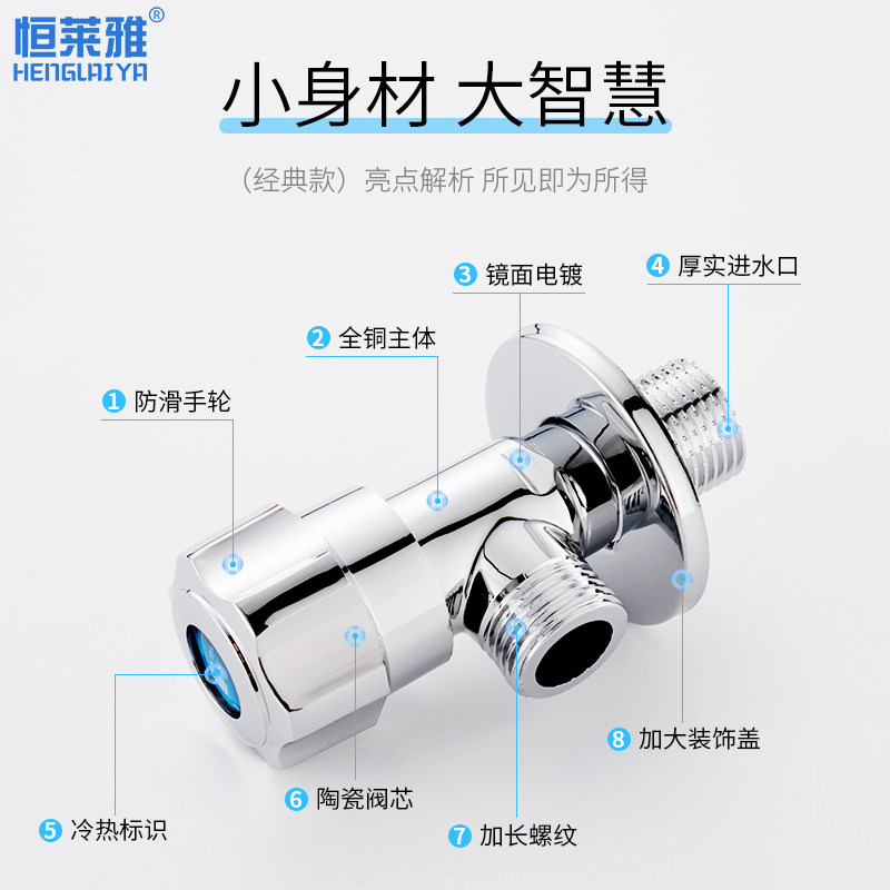 All copper thickening and lengthening triangle valve hot and cold water universal toilet water heater water stop valve eight-character valve switch household