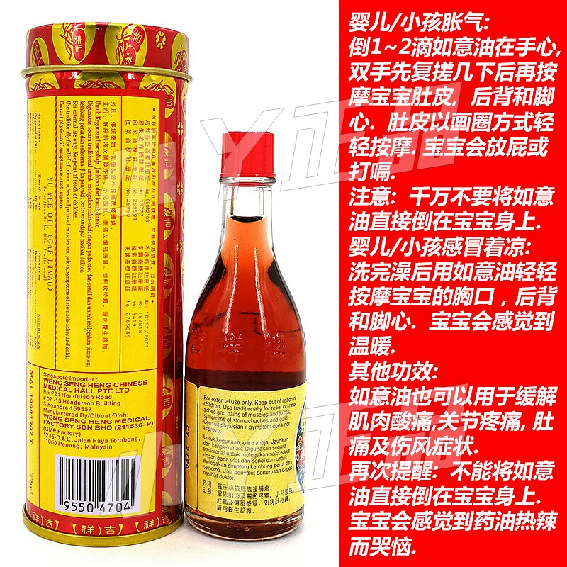 Auspicious Ruyi Oil Singapore Huang Xianghua Auspicious brand Wanhe Tang Ruyi Oil Baby flatulence 22ml