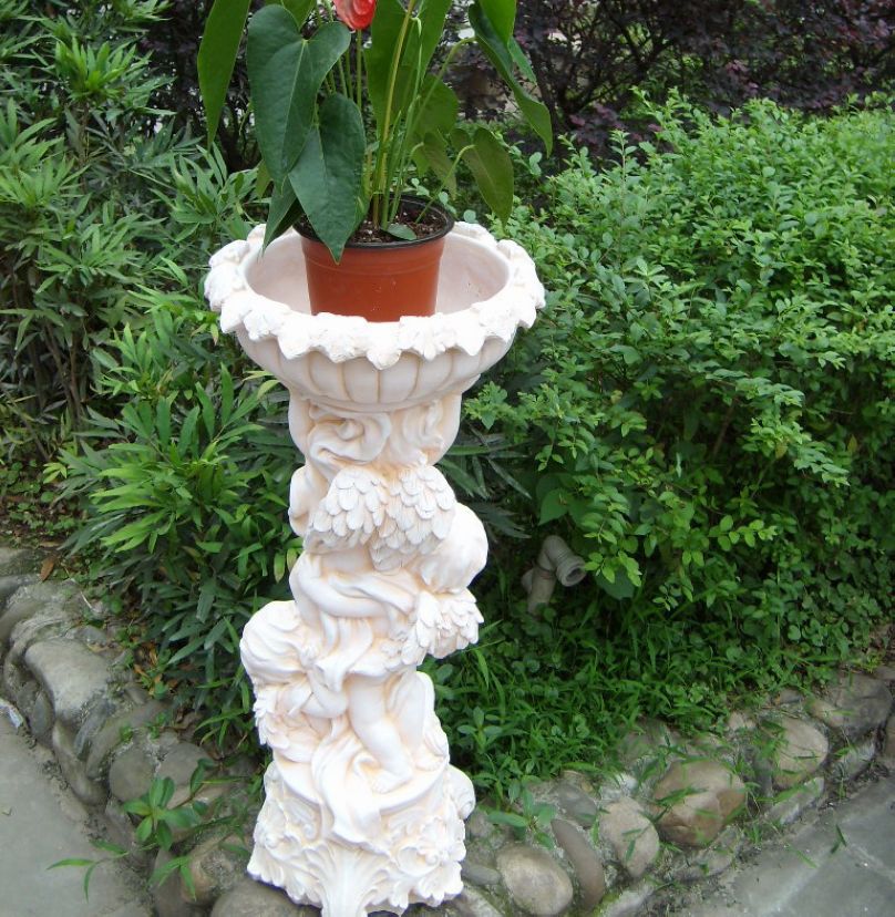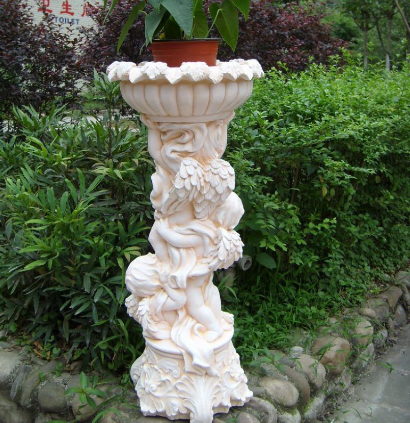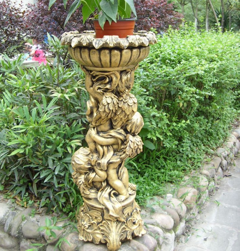 European-style green plant retro character decoration holding angel flower potted sculpture handicraft decorative glass steel large ornament