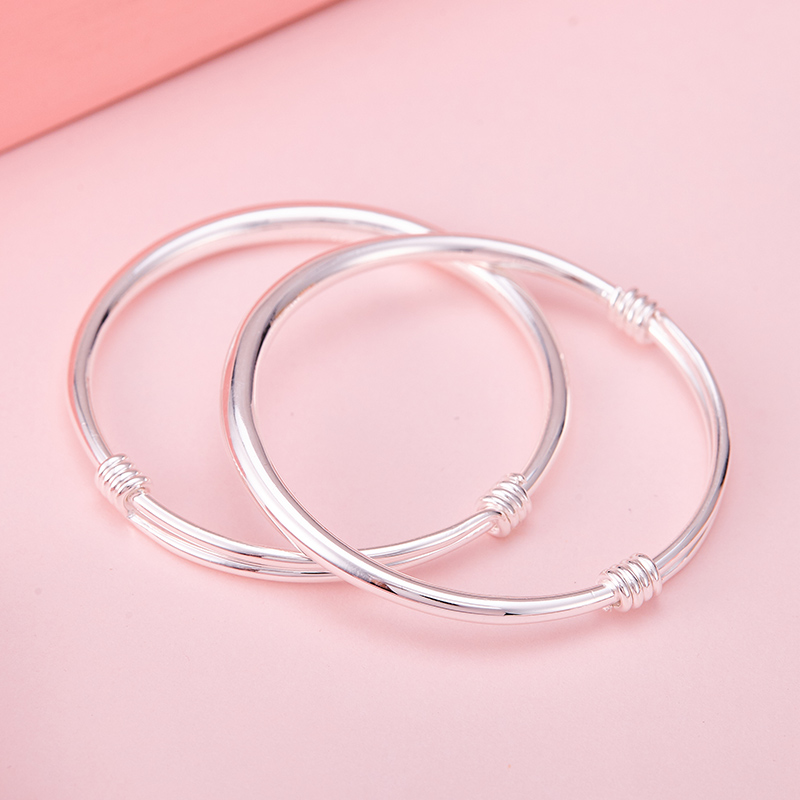 S999 pure silver bracelet male and female glossy face pass on the parent-child Foot Silver Bracelet Child child full moon send birthday