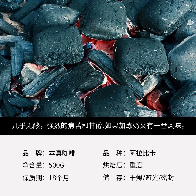 Ben Zhen Coffee charcoal roasted coffee beans Imported raw beans Fresh Italian American heavily roasted cooked beans 500g can be ground