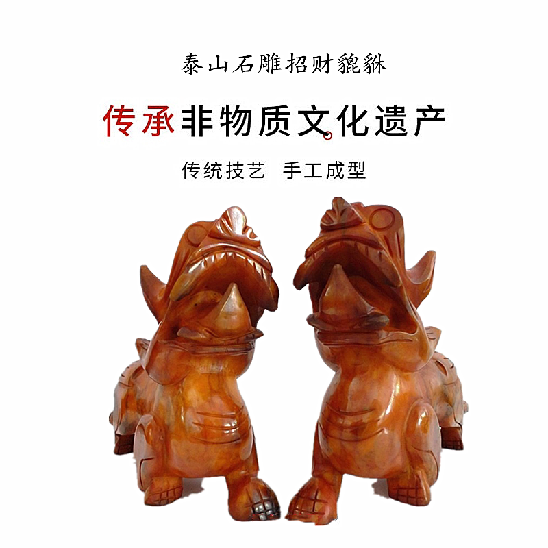 Taishan Hongyu Stone Stone Carving and Fortune Grand leopard A pair of swing pieces Original stone Living room Xuanguan Office Store Opening Gift-Taobao