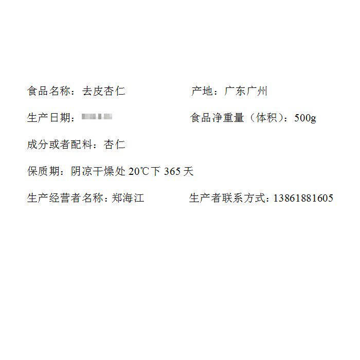 1 pound of high-quality peeled almonds 500g Wuxi Online Grain Store