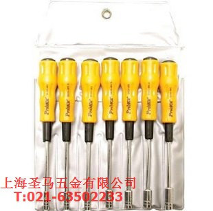 Baogong 1PK-9402 yellow and black soft handle socket screwdriver set of 7 (3~6mm*70)