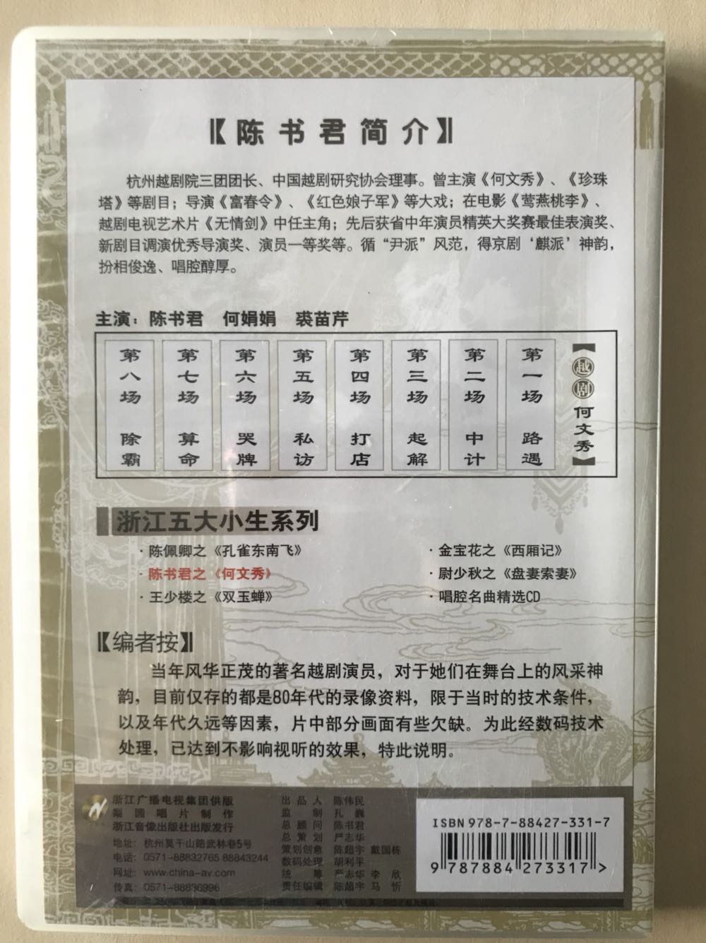The top five young students in Zhejiang Yue Opera: "He Wenxiu" Chen Shujun He Juanjuan 3VCD Stage Live