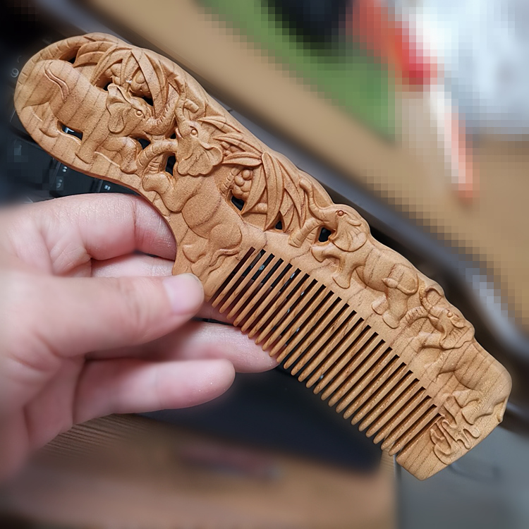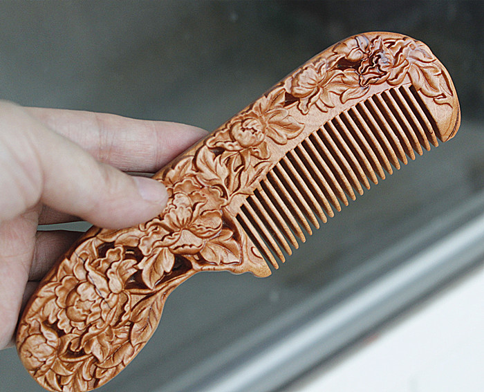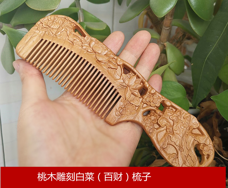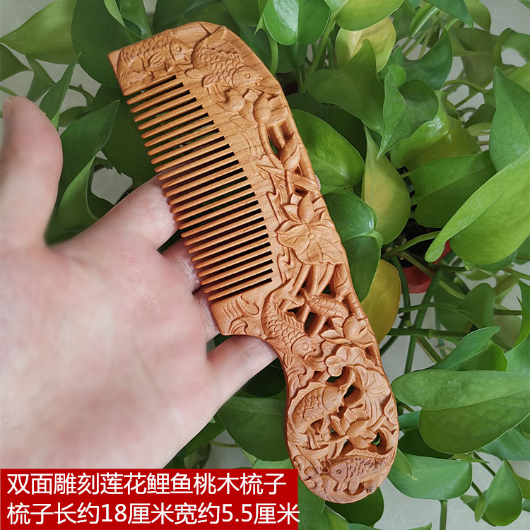 Pure Peach Wood Comb Peach Wood Finely Carved Cabbage Peony Carp Lotus Multiple wooden combs to send lovers for their own use