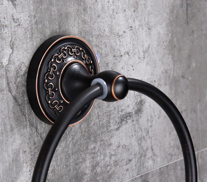 Copper Wire Drawing Gold Black Ancient Bronze Bathroom Pendant Round Base Flower Bottom Basin Towel Hanging Rub Hand Towel Rack Towel Ring