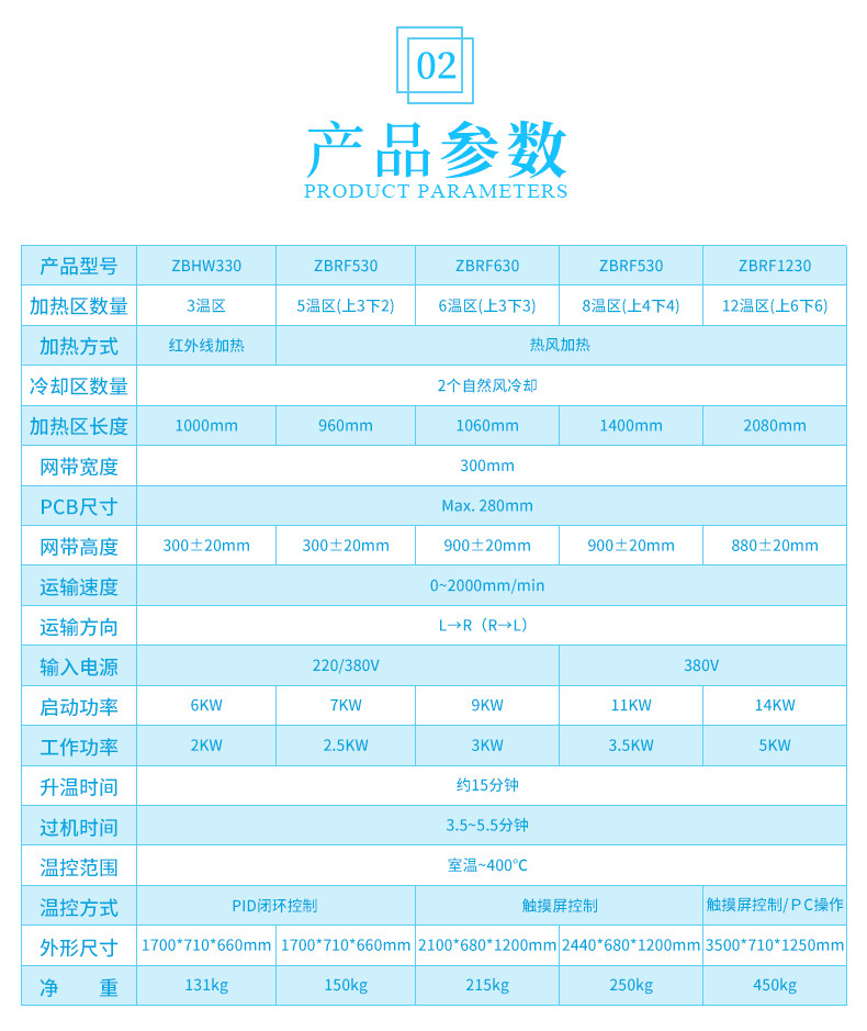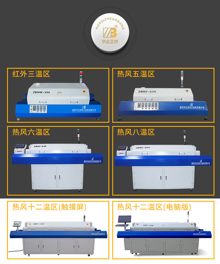 ZBHW330(upper 3 temperature zone infrared)ZBRF530(upper 3 and lower 2 temperature zone hot air)ZBRF630(upper 3 and lower 3 temperature zone hot air)ZBRF830 (upper 4 and lower 3 temperature zone hot air) ZBRF830 (upper 4 and lower 3 temperature zone hot air) ZBRF830 (upper 4 and lower 3 temperature zone hot air) ZBRF830 (upper 4 and lower 3 temperature zone hot air
