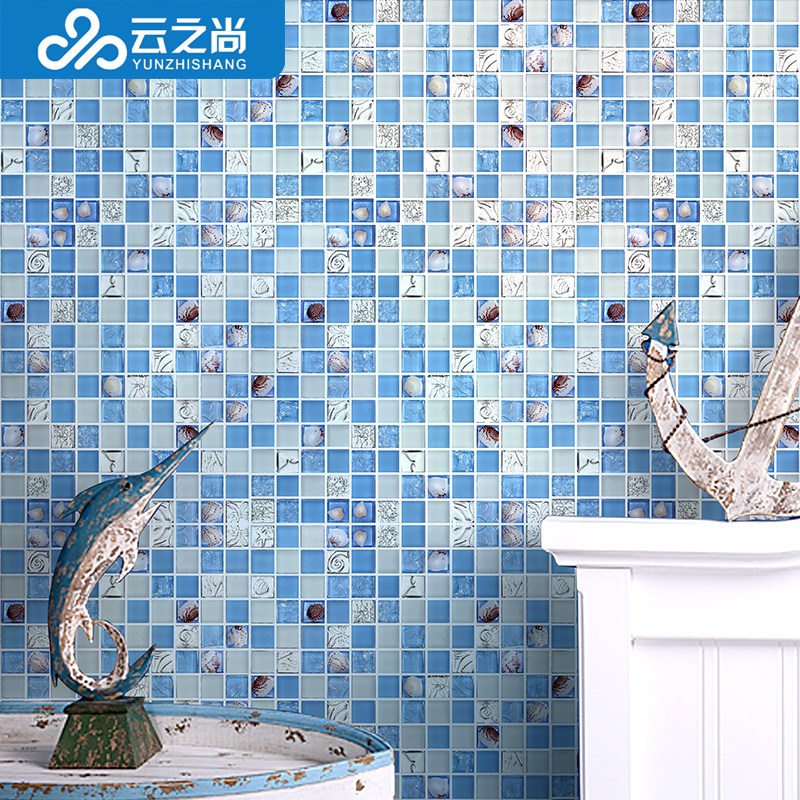 Crystal glass background wall Blue Mosaic pool Fish pond Powder room bathroom Mediterranean pool tiles