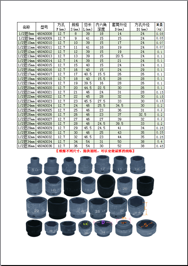 Rhenium 1 2 Wind cannon sleeves Electric wrench 8mm 8mm -27 -4 36 Hexagonal sleeve wrench Standard length