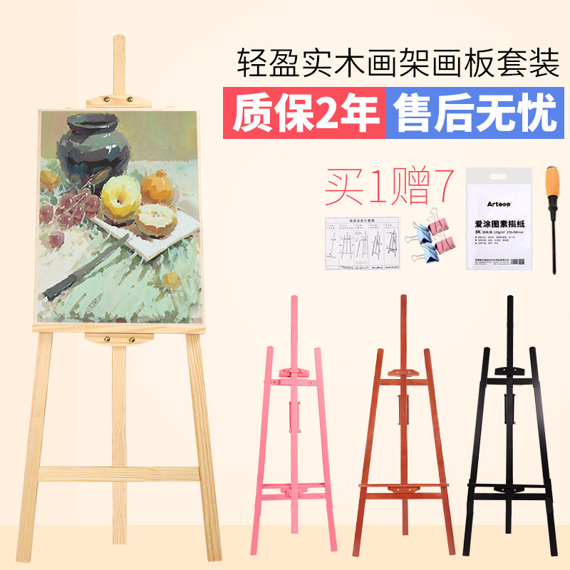 1 45 meters solid wood wooden easel Drawing board sketch sketching painting bracket type 4K drawing board Easel set folding multi-functional beginner sketch shelf Adult oil painting rack Advertising display