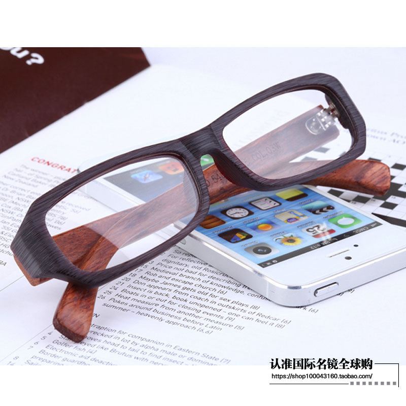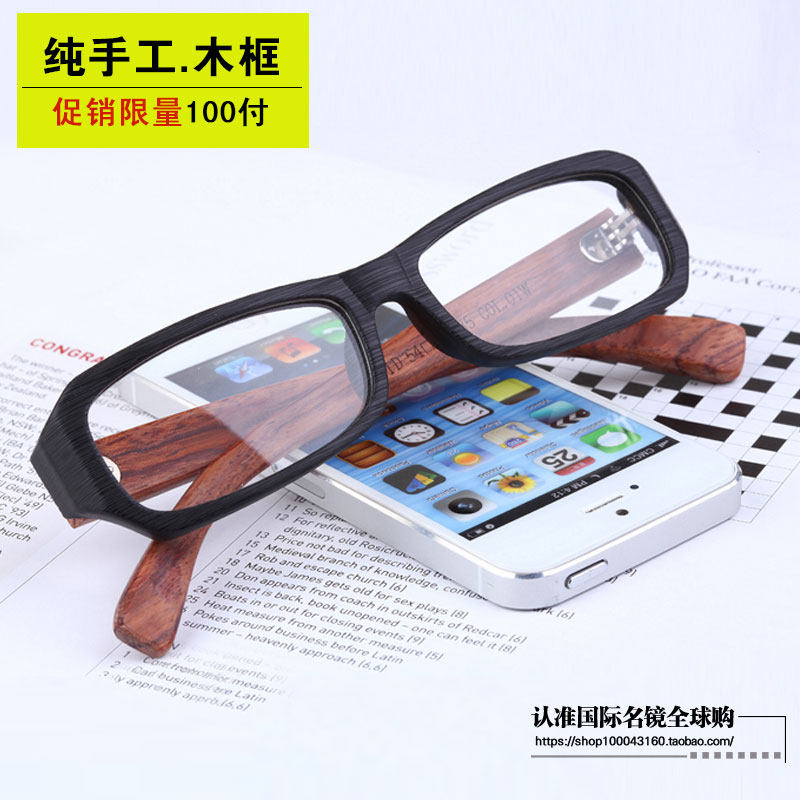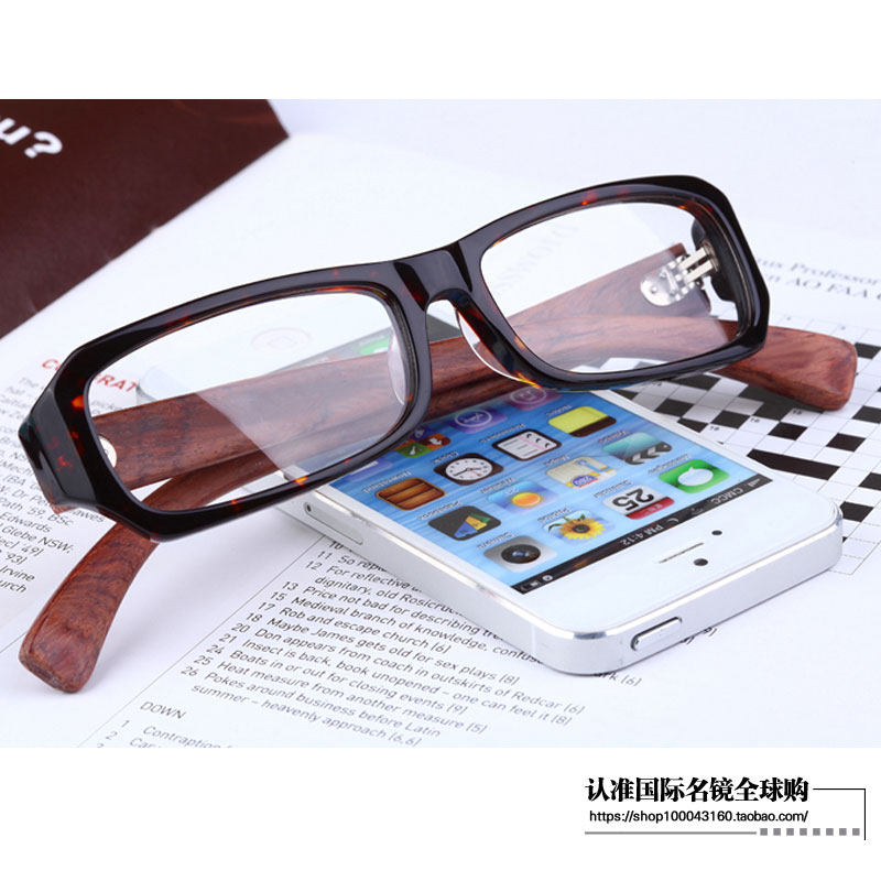 Wang Han retro glasses frame male tide wooden face full frame glasses frame female with small frame solid wooden leg near - sight glasses