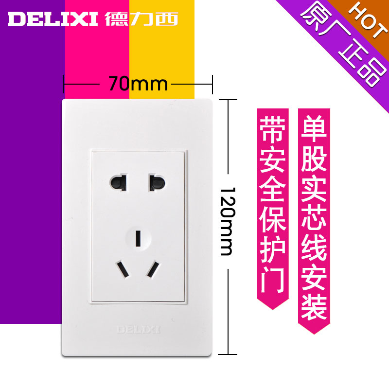 Delixi 120 switch socket five-hole socket Wall panel 5-hole two-three plug power supply 120 dark socket