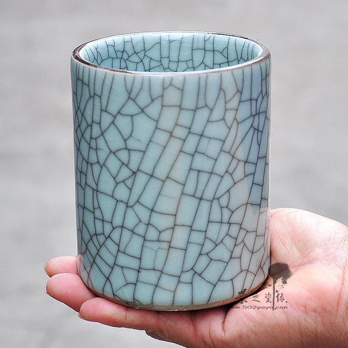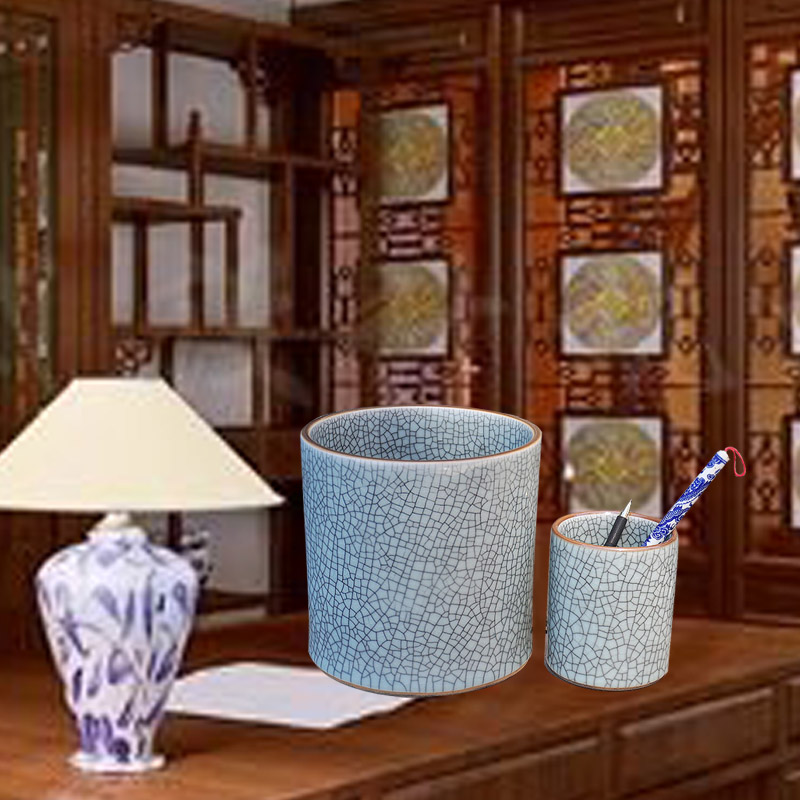 Jingdezhen Ceramic Wenfang Four Treasures Guan Jun Gao Kiln Cracking Glaze Pen Holder Study Room Tilting Hair Brush Extra Large