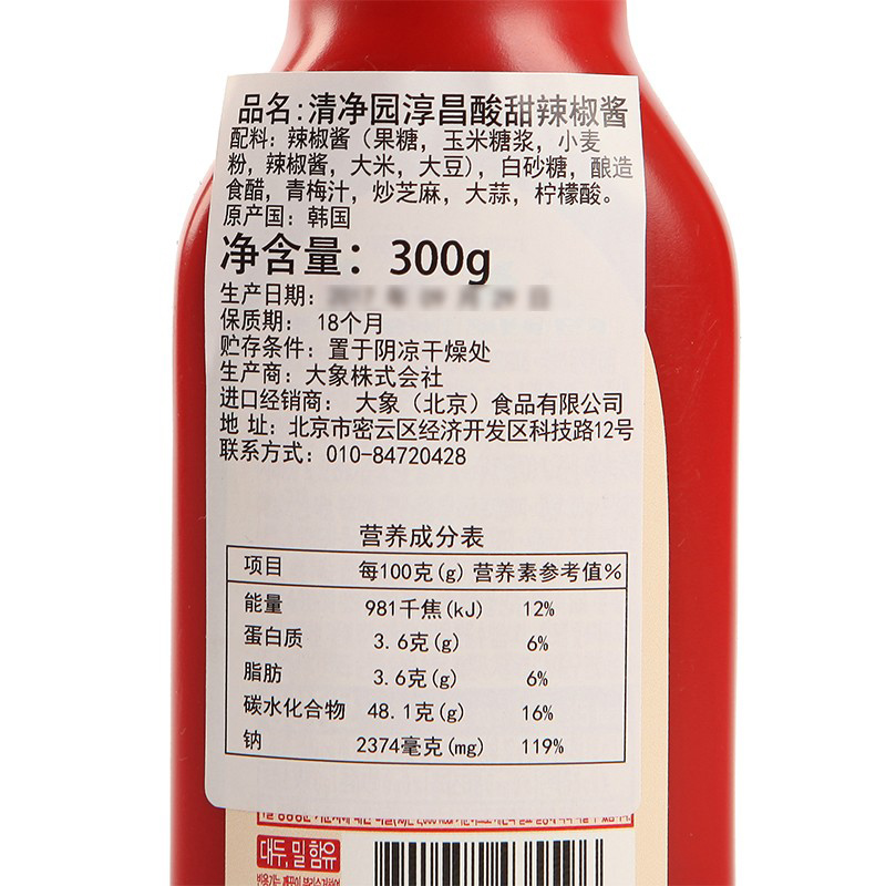 Qingjingyuan Chunchang Sweet and sour chili sauce 300g Korean imported Korean stone pot bibimbap sauce Noodle sauce dipping sauce
