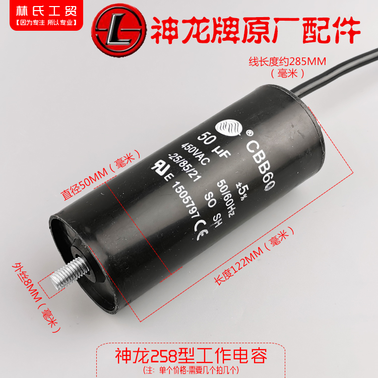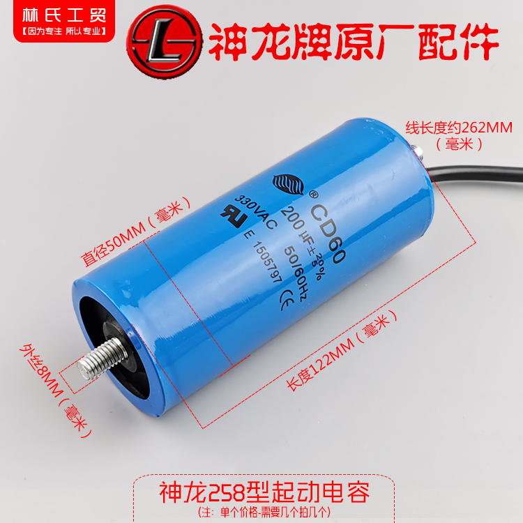 Shanghai Shenlong 258 high-pressure cleaning car washing machine car brush pump accessories original starting capacitor 200UF