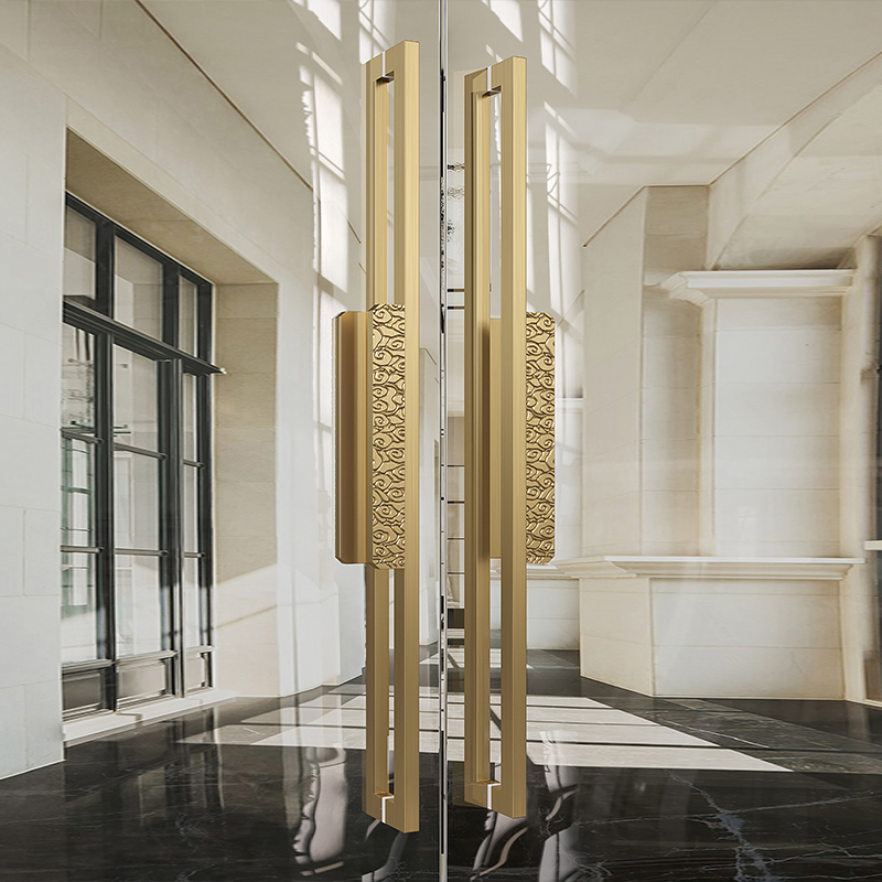 Light luxury gold brushed glass door handle hotel stainless steel door handle framed door solid wood box big handle