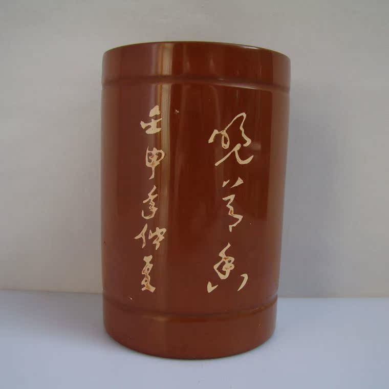 Yunnan Purple Pottery Old Factory Earth Kiln Firewood Burning Old Pottery Pen Holder 92-year Wenfang Supplies pen holder Purple Pottery Old Pen Holder