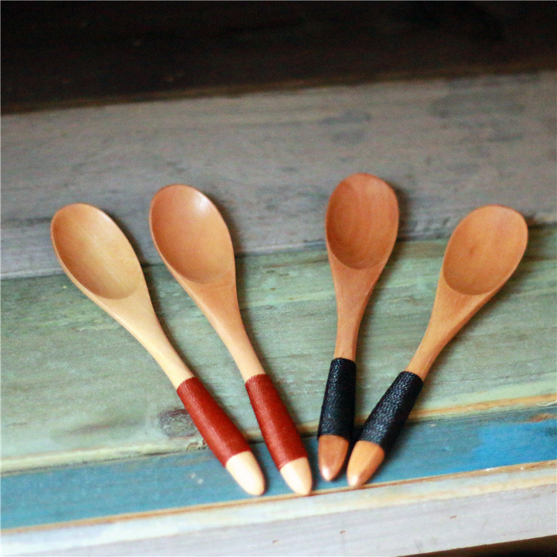 zakka wind natural wooden tableware creative coffee spoon Nanmu winding spoon Short handle wooden spoon mixing spoon