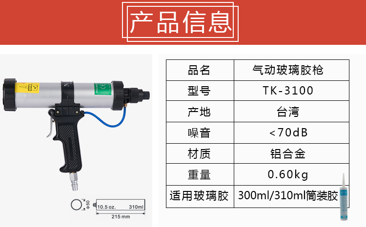 Taiwan Nama TK-3100 3600 Pneumatic gluing gun glass rubber gun Silicone Gun Press Glue Soft Glue Gun 310ml