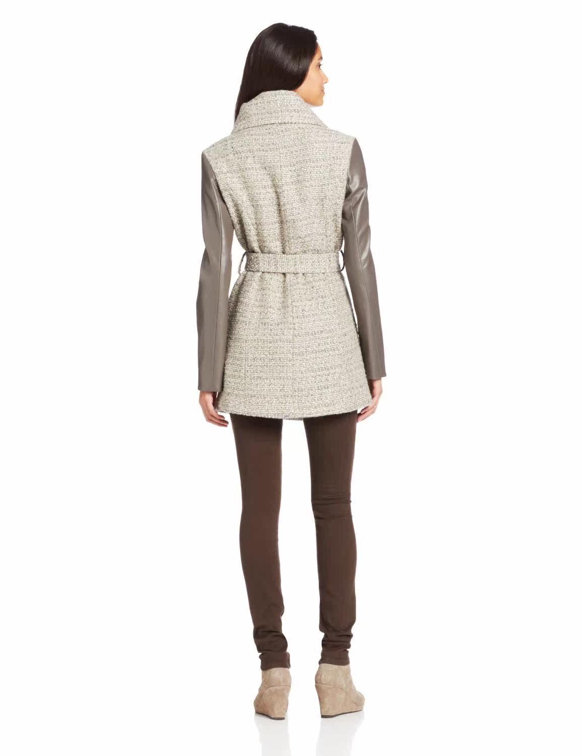 Lady t Tahari in the middle of a big coat fur coat imitation leather cuff T12YU US straight mail-Taobao