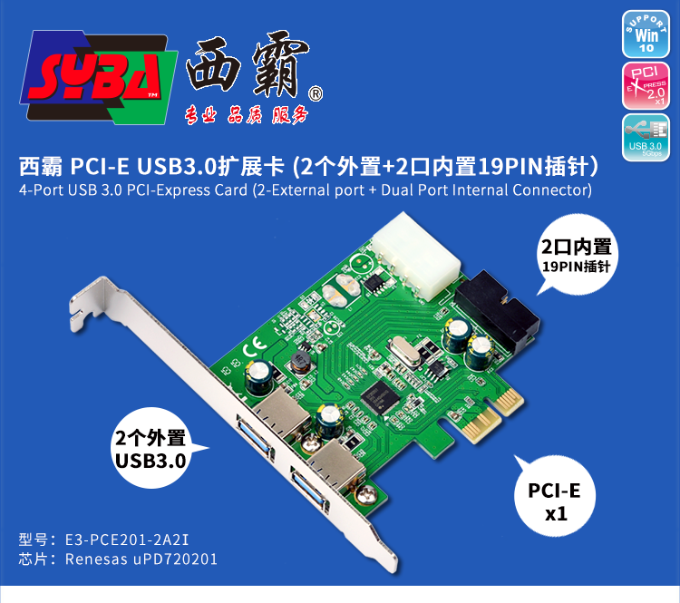 Western bully FG-EU306C desktop computer PCI-E2 mouth USB3 0 card with 19 pin front E3-PCE201-2A2I
