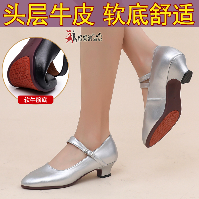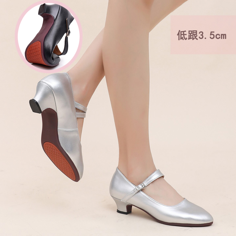 Silver Low 3 Heel Stage Performance Group Dance Shoes Women Soft-bottom 100 Hitch Outdoor Square Ballroom Dancing Shoes