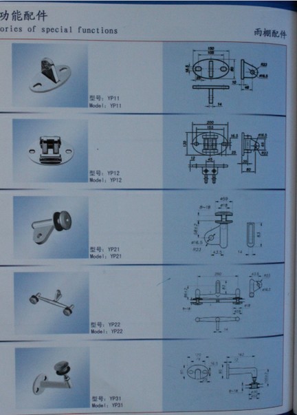 Glass Curtain Wall Canopy Rain Shed Rain Canopy Accessories 304 Stainless Steel Branch Telescopic Rod Lasola Lock Ear Plate Key Lock Pull Rod 16mm