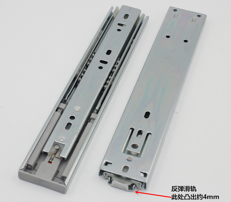 14 inch touch - type steel bead three - step track - free hand drawer three - step drawer slide - ralling slide - back rail