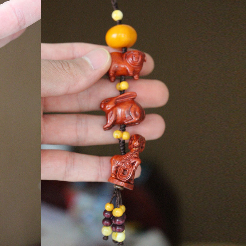 Peach wood pendant twelve zodiac three-in-six-in-six round noble person pendant rat cow tiger rabbit dragon snake horse sheep monkey chicken dog pig