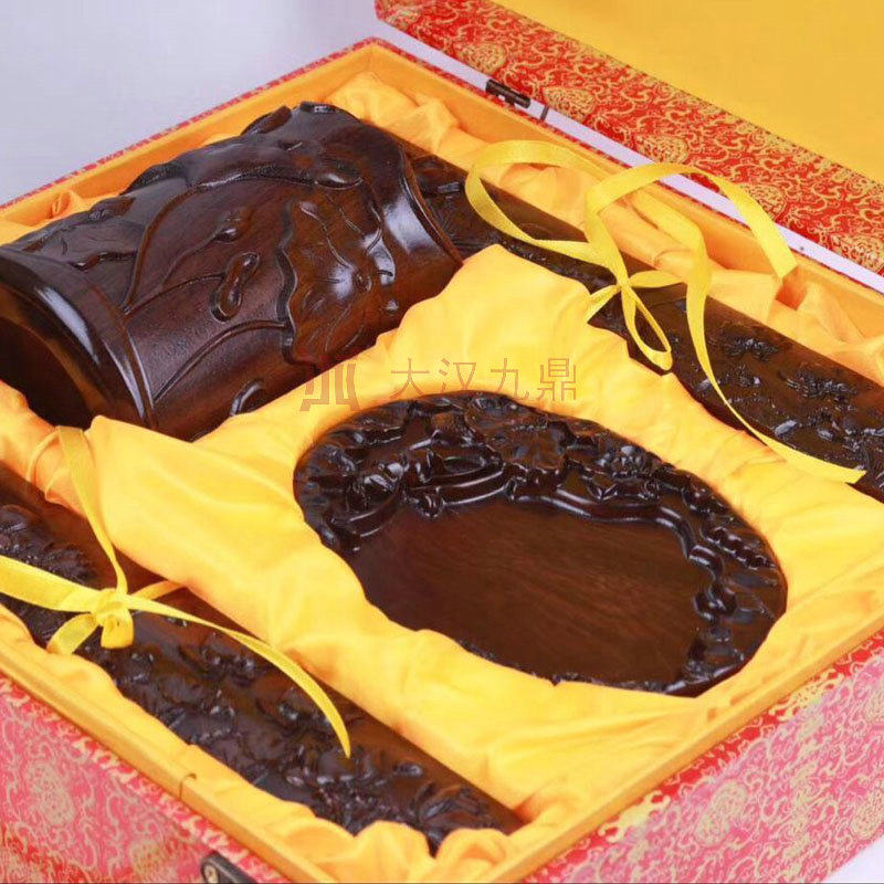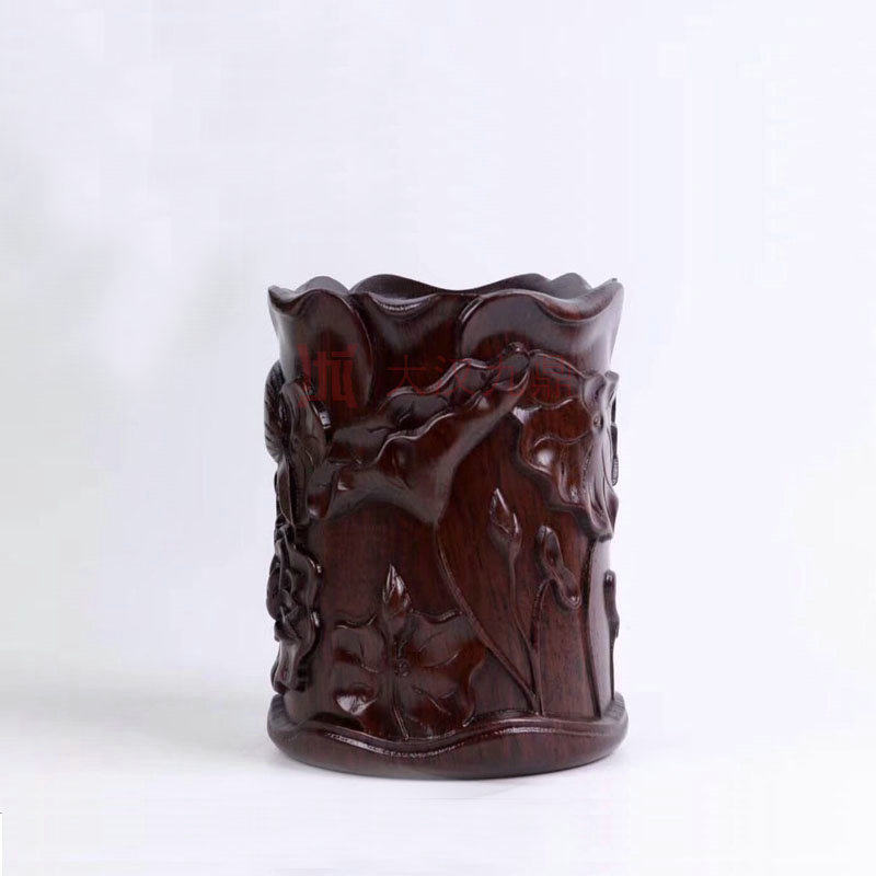 Lotus Wenfang House Four Treasure Gift Box Pendulum Pieces Pen Holder Town Ruler Black Sandalwood Carving Craft Gift Hem Accessories Stationery Red Wood Solid Wood