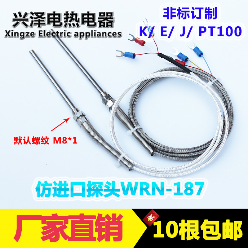 Imitation import monitor-type thermocouple temperature sensor probe-type M8 threaded mounting K type PT100 thermal resistance