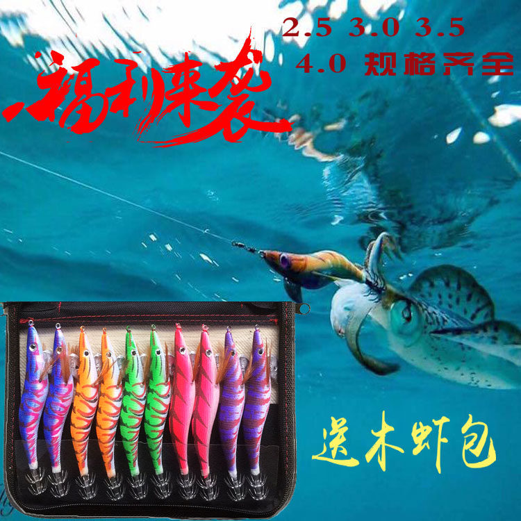 2 5 3 0 3 5 4 0 wooden shrimp package squid hook luminous fluorescent bait fishing gear lightning set of ten