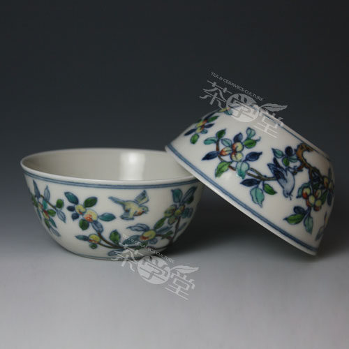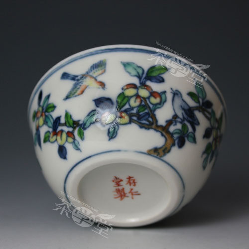 Taiwan ceramic artist Li Cunren Cunren Tang Doucai flower fruit bird pattern wash ancient rhyme full antique teacup