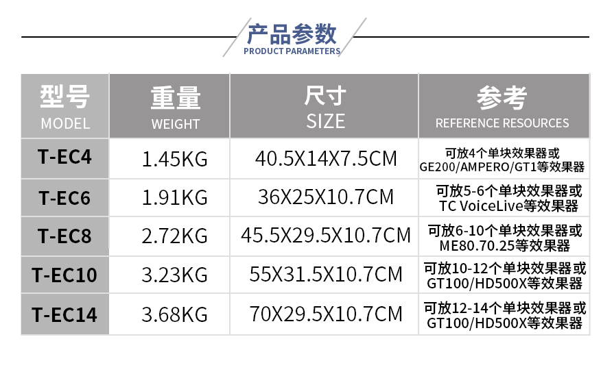 (Boxes cannot be placed on boards) (Boxes can only hold a single piece) T-EC4 Mini T-EC6 Linglong T-EC8 S T-EC10 Medium T-EC14 Large Customized Model