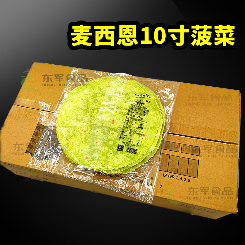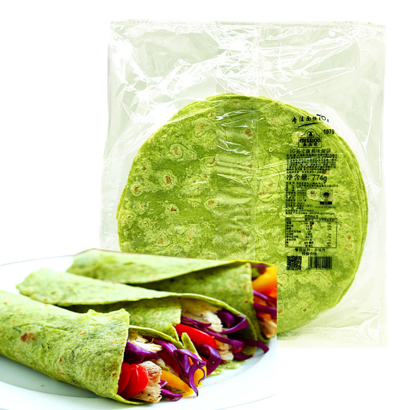 Macian's 10-Inch Spinach Flavoured Flatbread 12 Packs Chipotle Chicken Burritos Frozen Flatbread Pancake Crust 144 Pieces