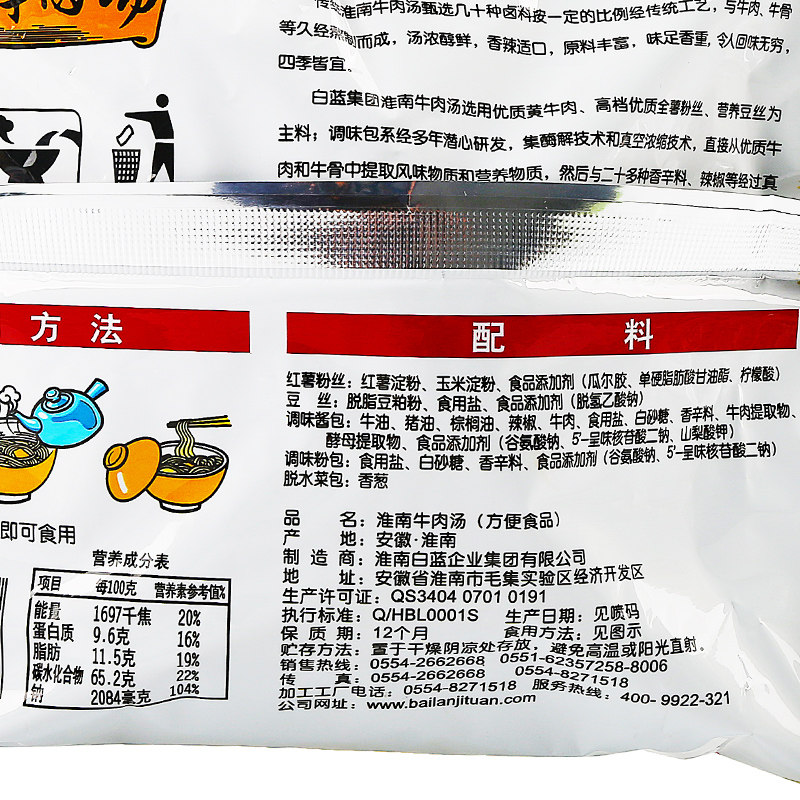 Huainan beef soup 20 bags of instant noodles vermicelli instant soup Vermicelli soup Spicy whole box specialty white and blue flavor Medium flavor