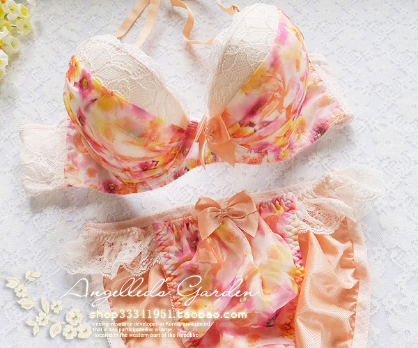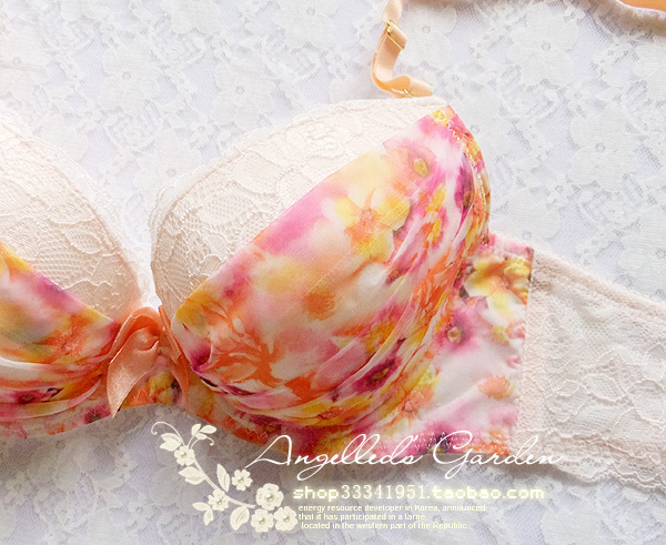 Japan's original single thickened and gathered bursting milk sweet girl small chest big steel ring underwear suit orange 70BCD75D