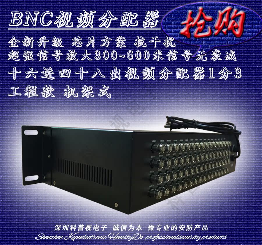 Rack-mounted 16-in 48-out BNC Video splitter 1: 3 16-in 48-out video splitter 1: 3