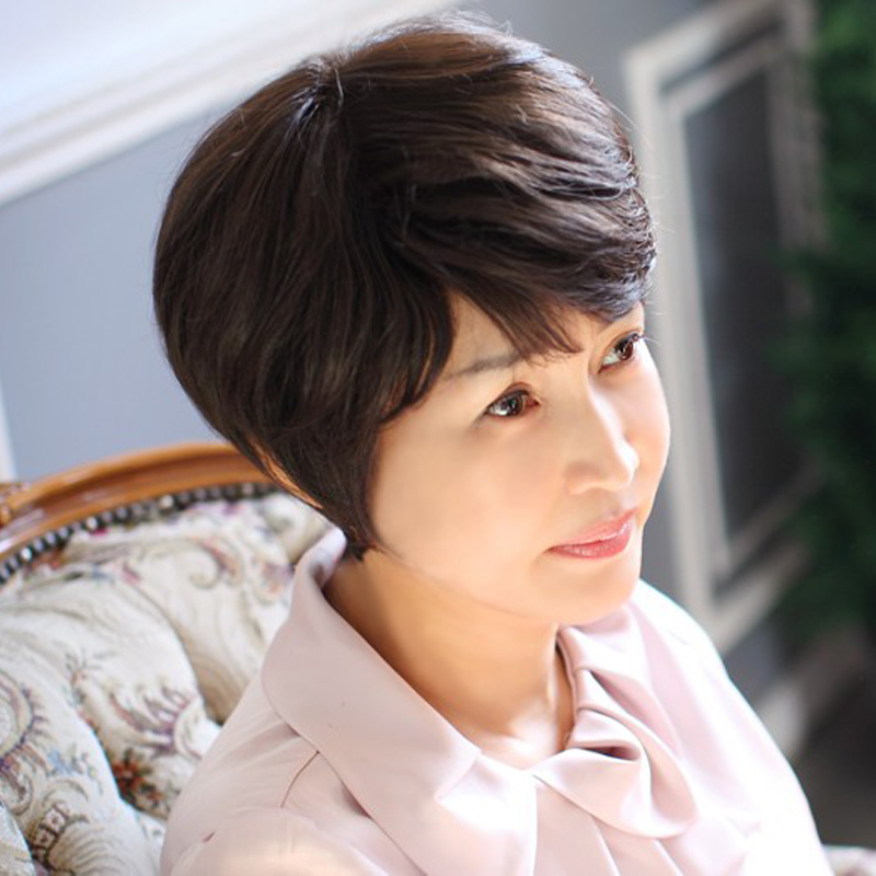 Real hair wig short hair lady jiafa headgear middle-aged mother fashion straight hair