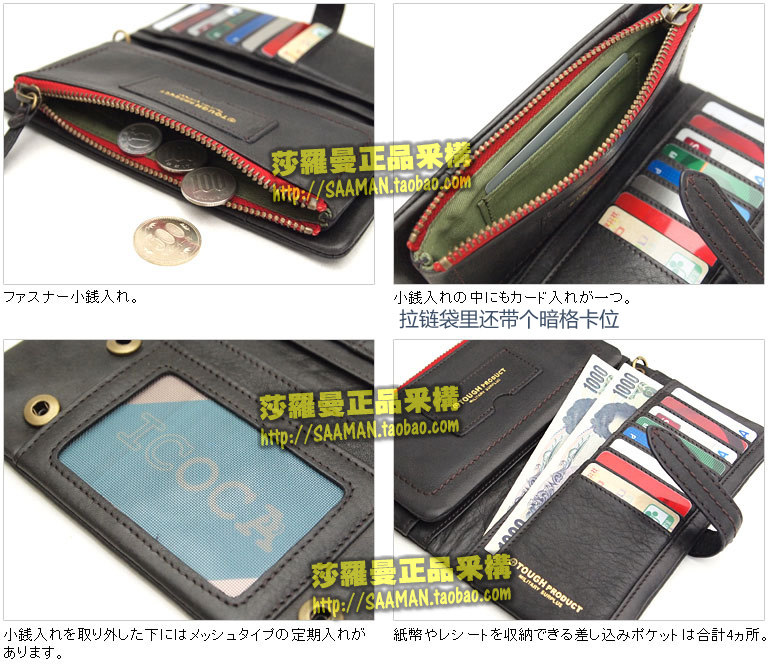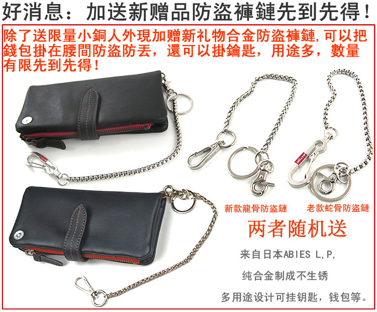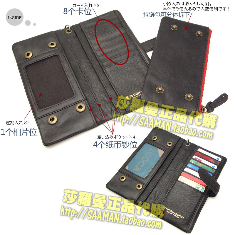 Japan imports TOUGH draw with buckle genuine leather money clip men's long wallet fashion New creative pull chain ticket holder