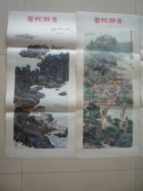 Nostalgic 80s old-age painting collection Decorative folk four screens Putuo scenic four sets