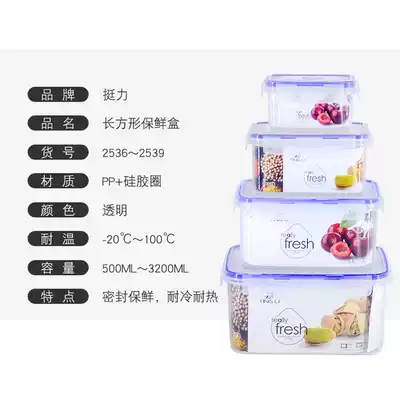 Tingli square fresh-keeping box Sealed food lunch box Plastic four-sided buckle lunch box Microwave refrigerator refrigerated storage