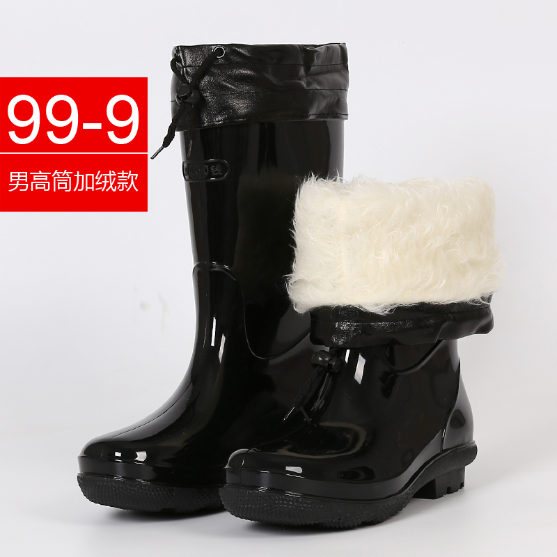 Double money men's high school cylinder work mine rain shoes resistant to acid-and-water shoes imitation rubber warm rain boots hard to wear